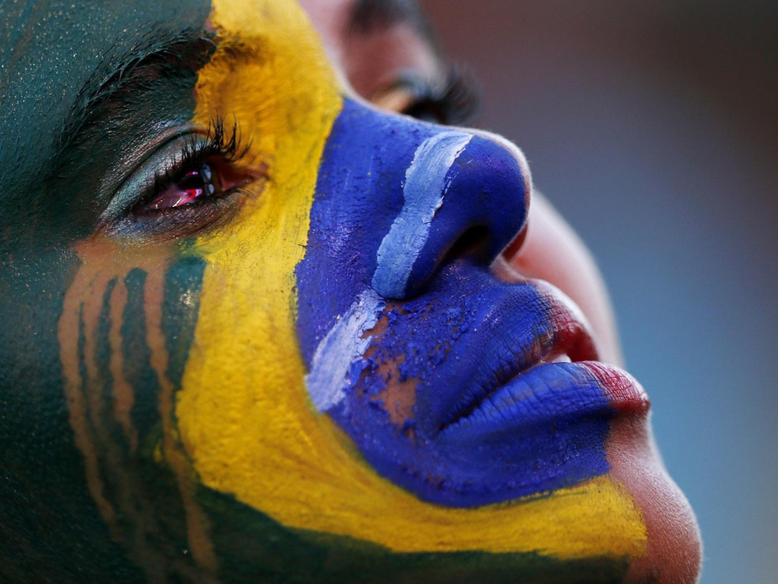 Wallpaper Brazilian flag painted on her face girl