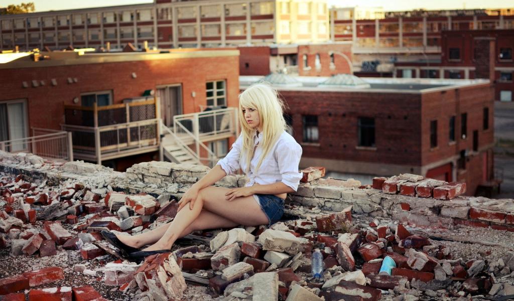Wallpaper Girl on the roof, including bricks