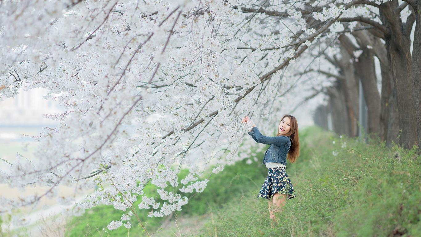 » Wallpaper Asian girl happy spring flowers