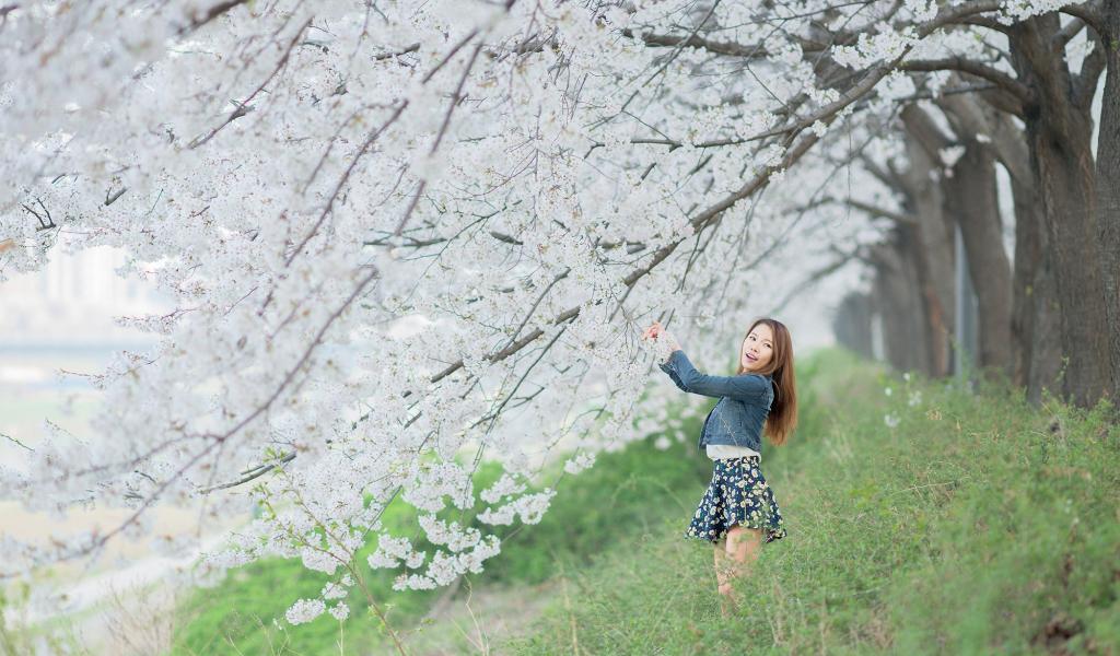 » Wallpaper Asian girl happy spring flowers