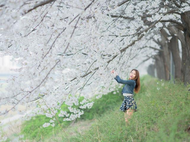 » Wallpaper Asian girl happy spring flowers