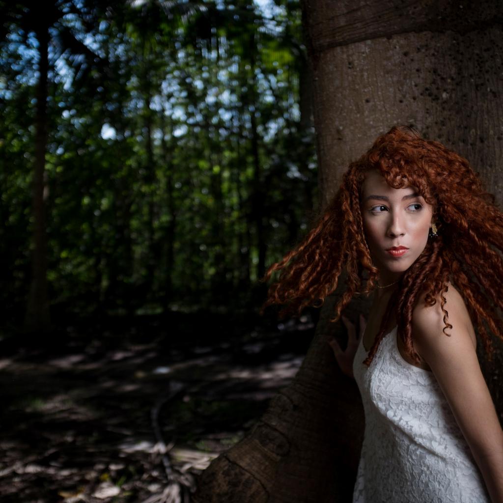 Wallpaper Red-haired girl with curly hair in a large tree