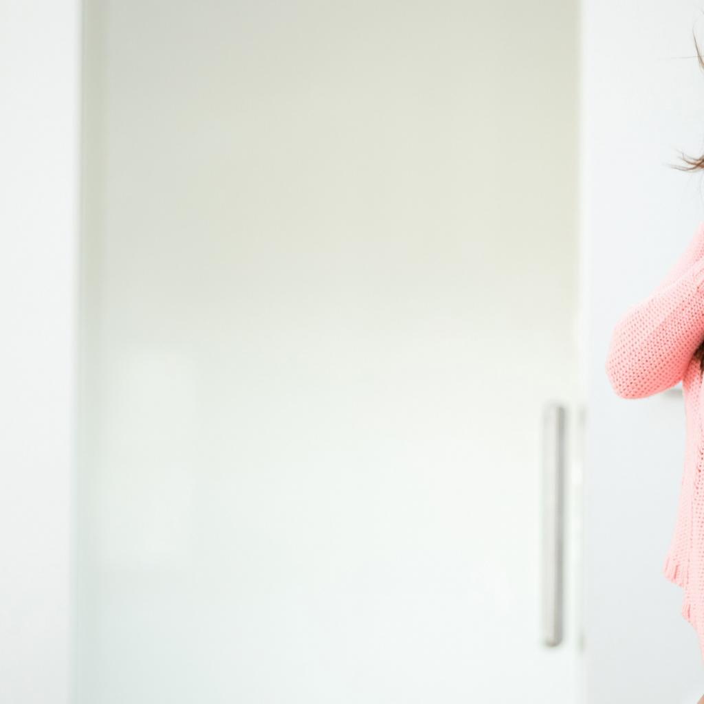 Wallpaper The brunette in a pink knitted sweater