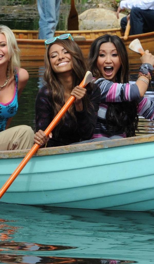 Wallpaper Three girls in a blue boat
