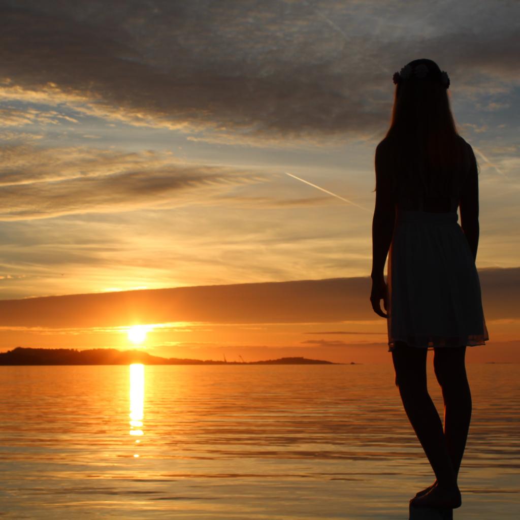 Wallpaper Girl watching the sunset in Norway