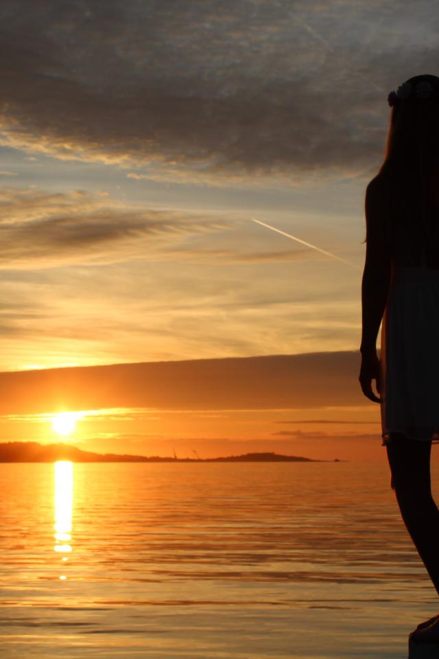 Wallpaper Girl watching the sunset in Norway