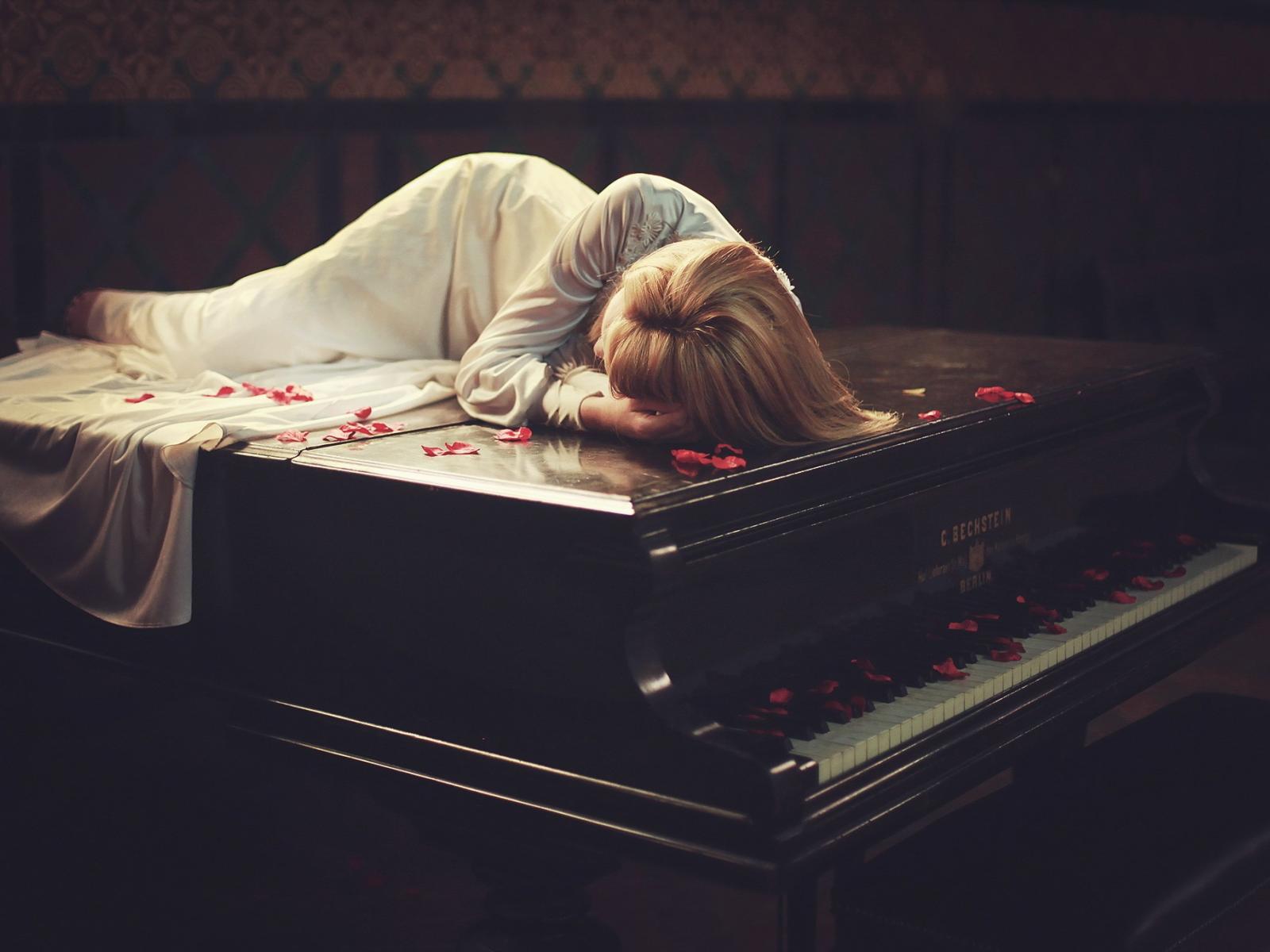 » Wallpaper Girl lying on the piano