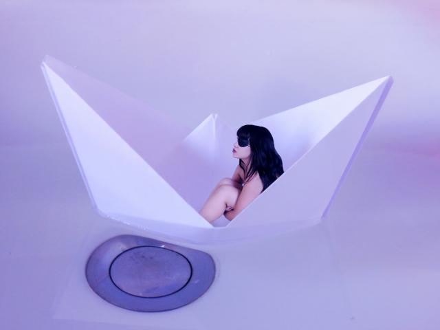Wallpaper A girl sits in a paper boat