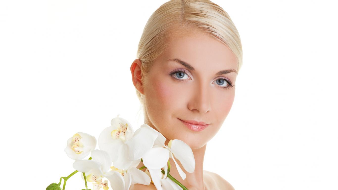 Wallpaper White flowers on the shoulder of the girl