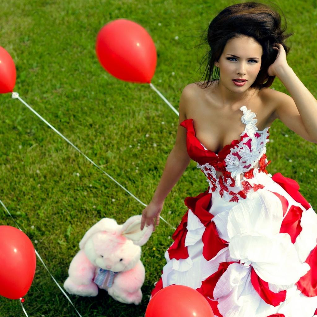 Wallpaper The girl with a toy among red balloons