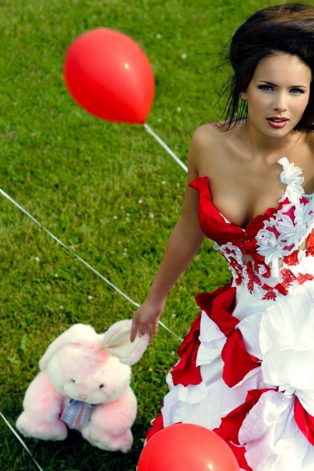 Wallpaper The girl with a toy among red balloons