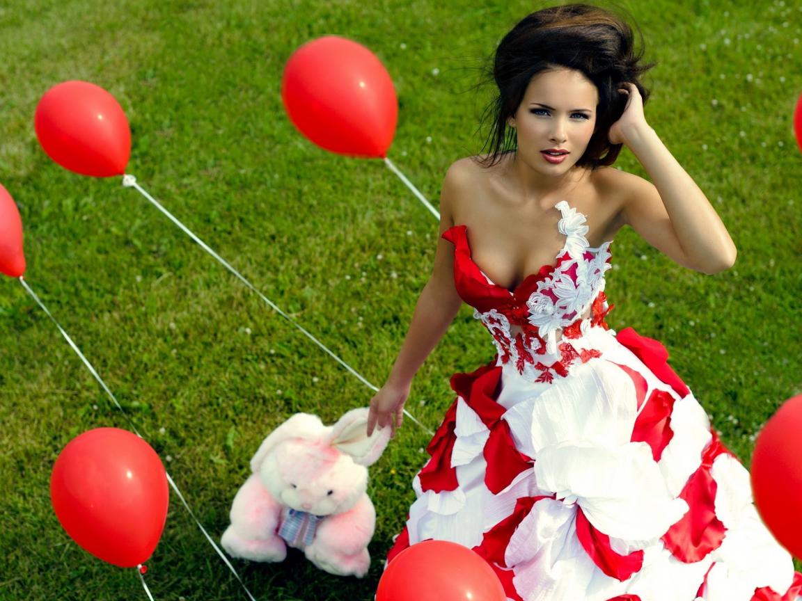 Wallpaper The girl with a toy among red balloons