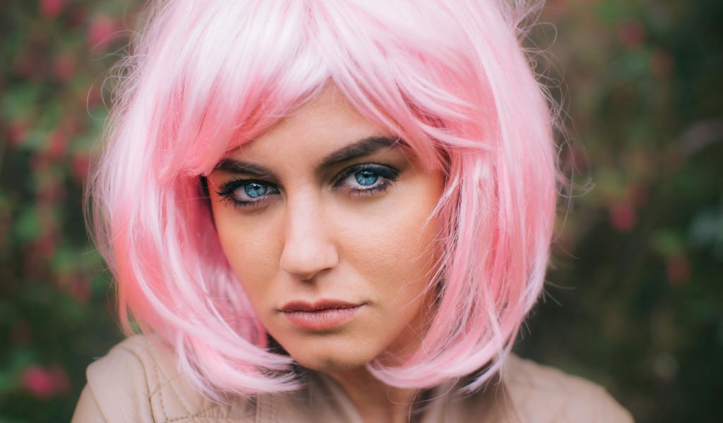 Wallpaper The girl with blue eyes in a pink wig