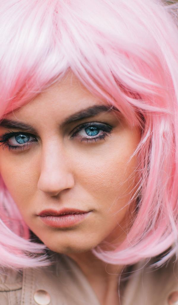 Wallpaper The girl with blue eyes in a pink wig