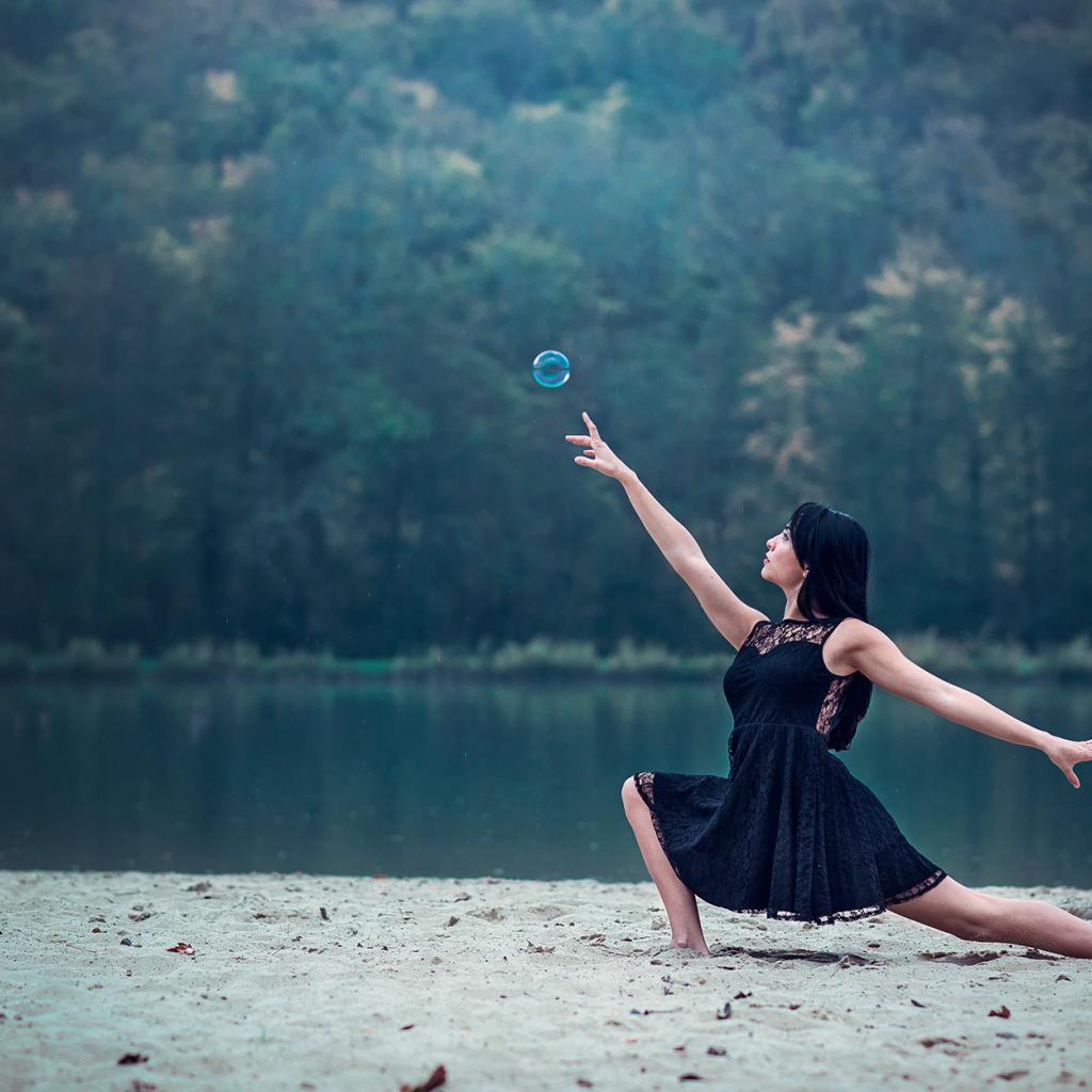 Wallpaper Girl in a black dress and a bubble