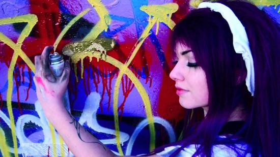 Wallpaper Girl painting graffiti on a wall