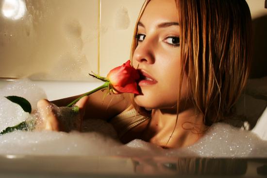 Wallpaper Long-haired red-haired girl in a field of lavender