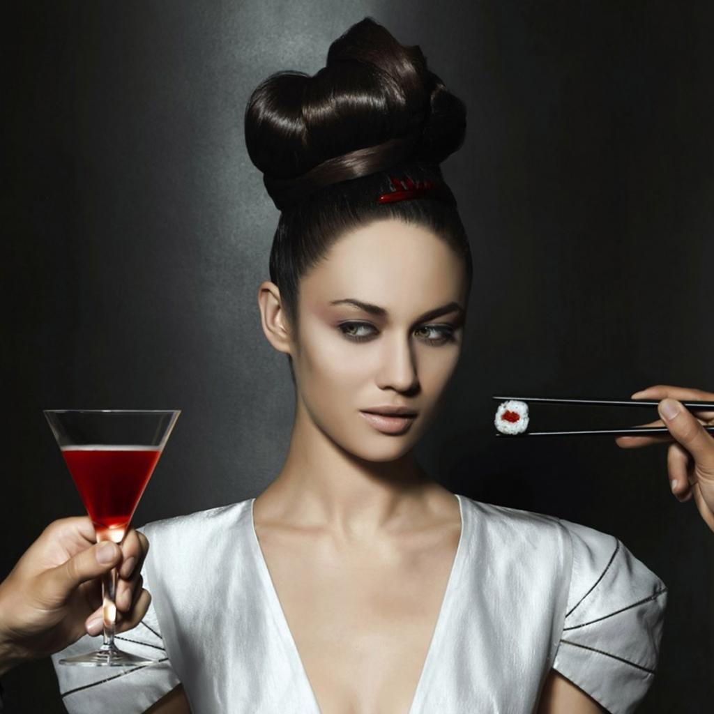 Wallpaper The girl was treated to wine and sushi