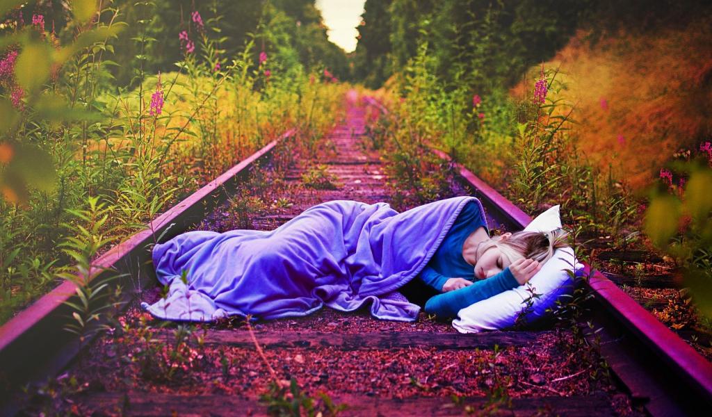 Wallpaper She sleeps in abandoned rails