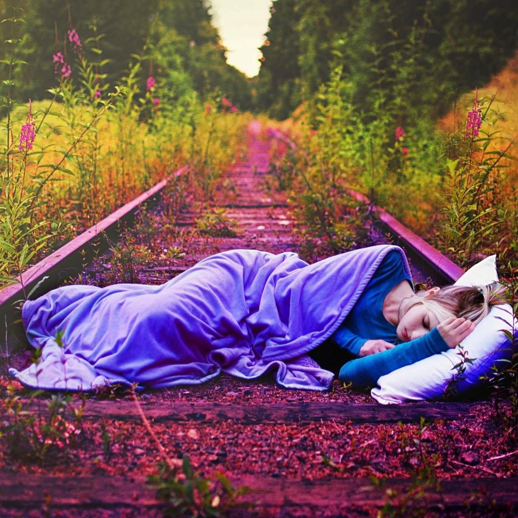 Wallpaper She sleeps in abandoned rails