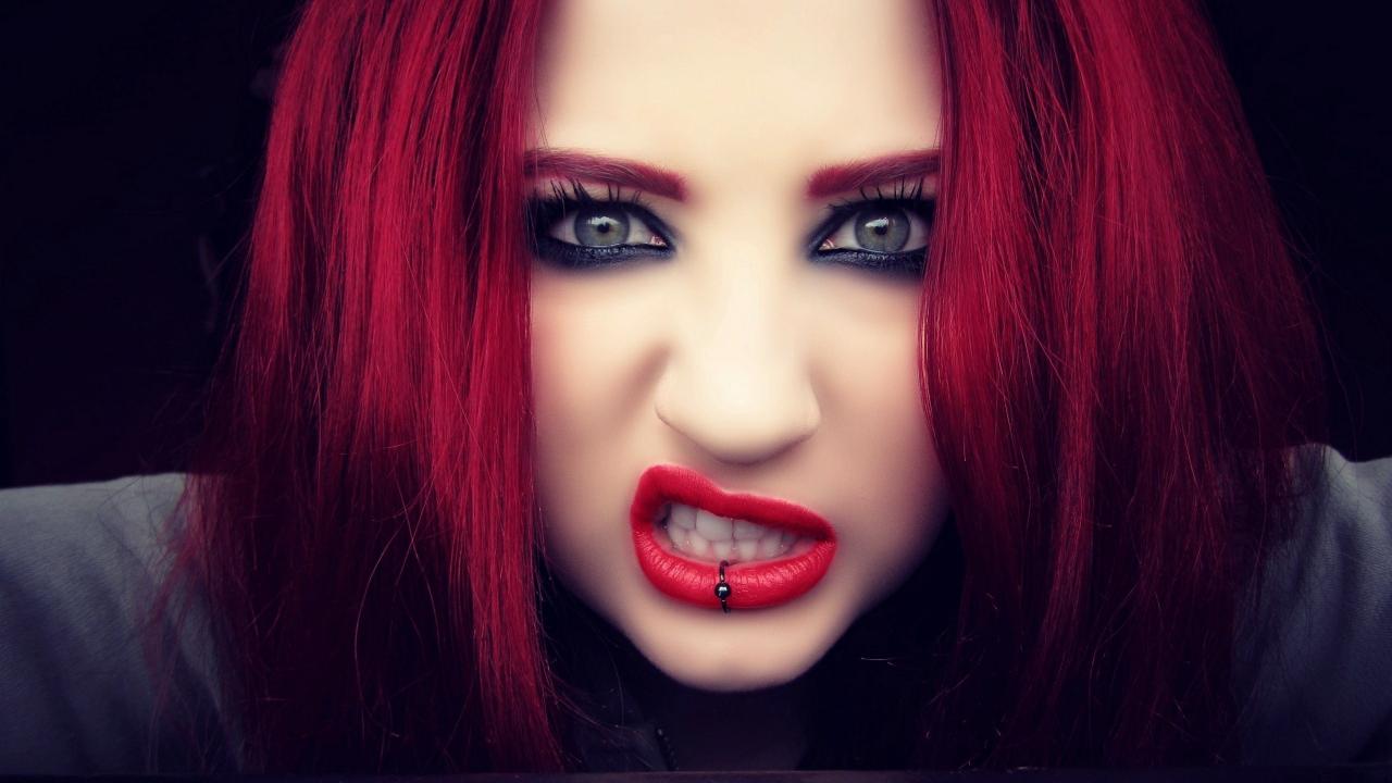 Wallpaper The girl with red hair showing teeth