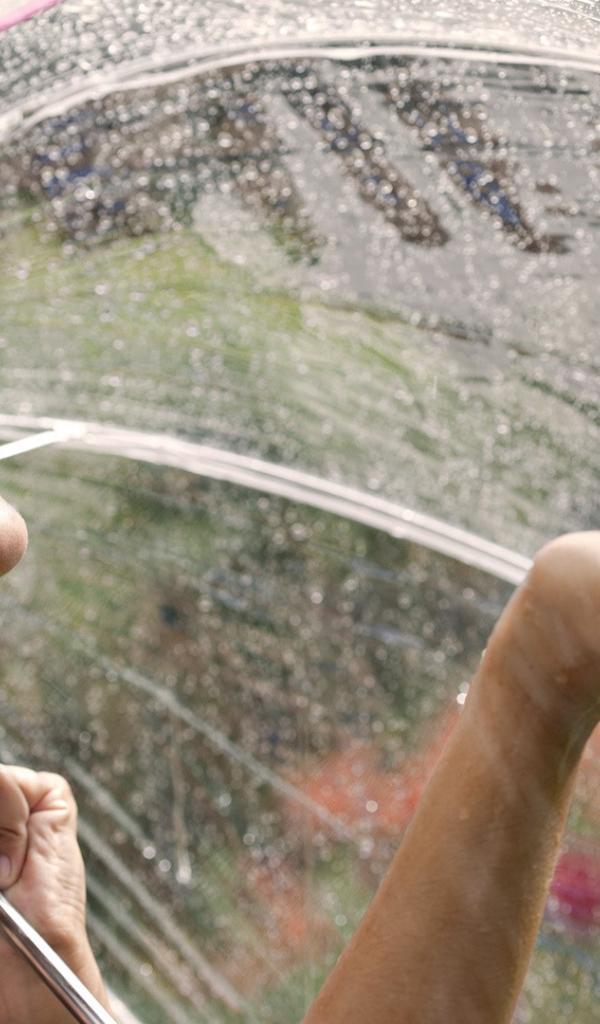 Wallpaper Girl under a transparent umbrella catches rain hand
