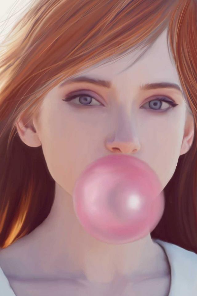 Wallpaper Red-haired girl with a pink gum