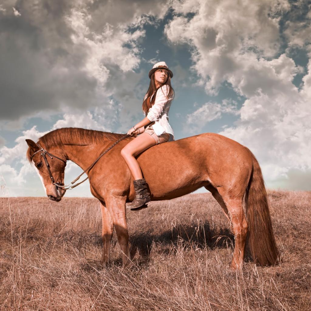 Wallpaper Girl in hat riding a horse