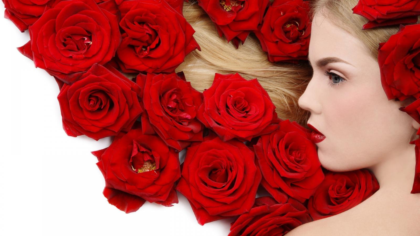 Wallpaper Hair girl in roses
