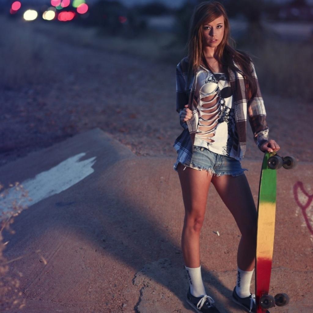 Wallpaper The girl with a bright skateboard