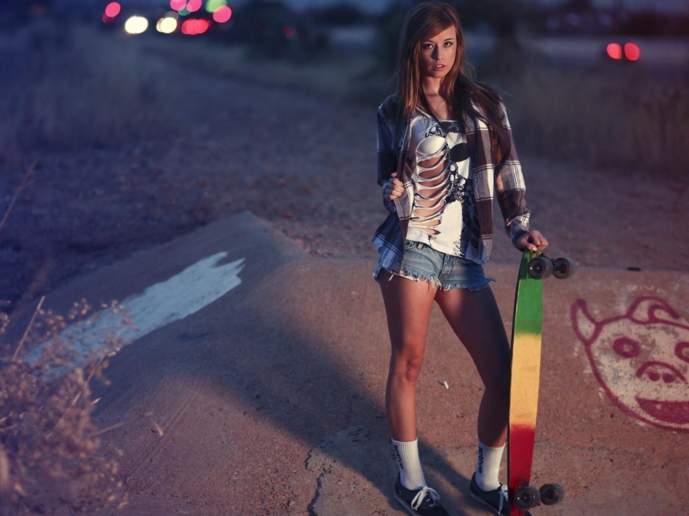 Wallpaper The girl with a bright skateboard