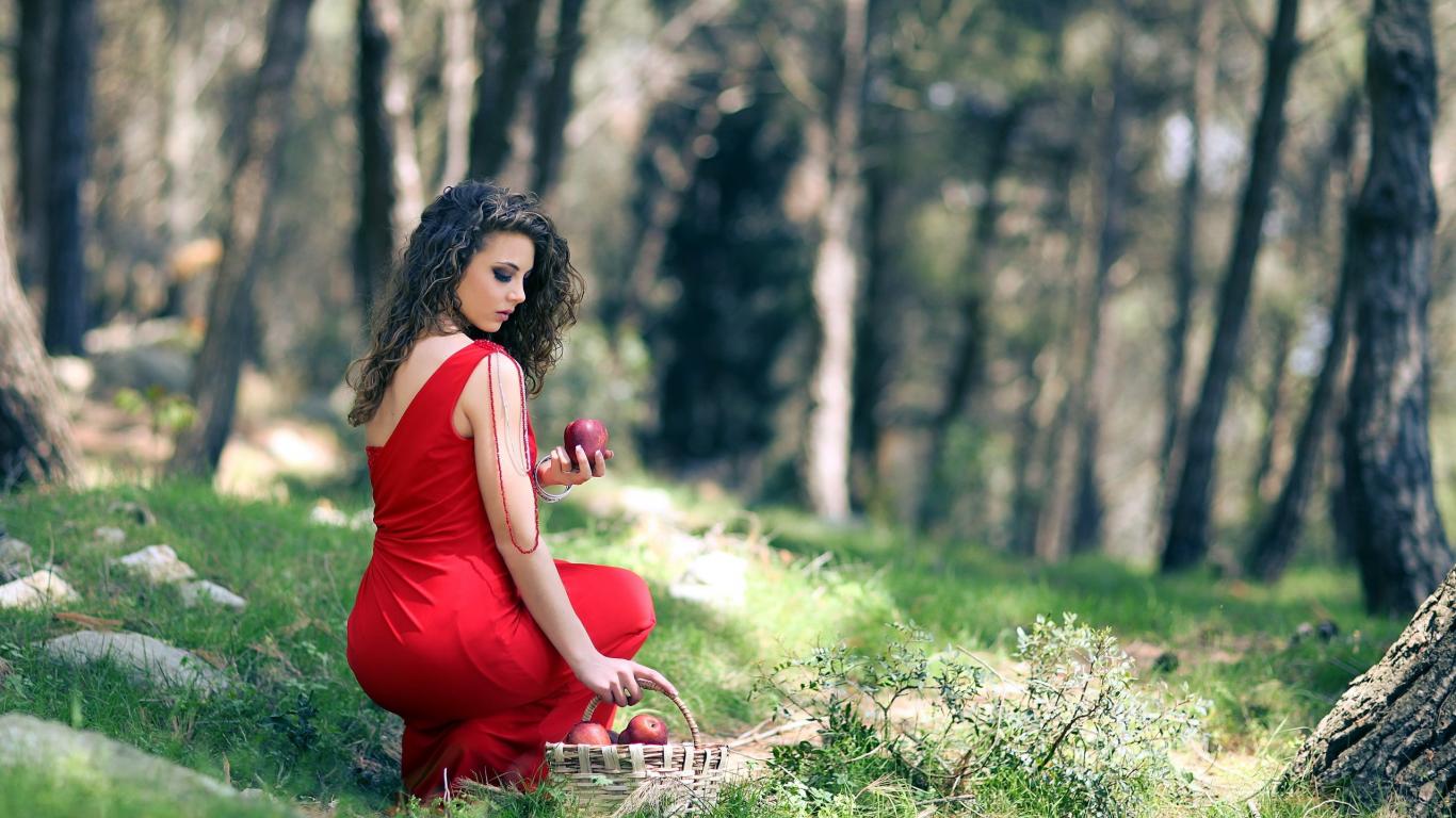 Wallpaper Girl with a basket of apples