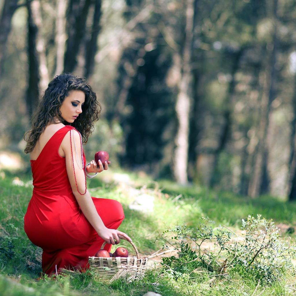 Wallpaper Girl with a basket of apples
