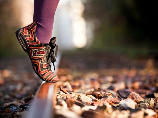 Wallpaper Girl on tiptoes on the rail