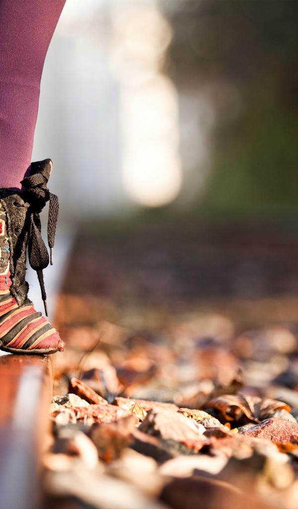 Wallpaper Girl on tiptoes on the rail
