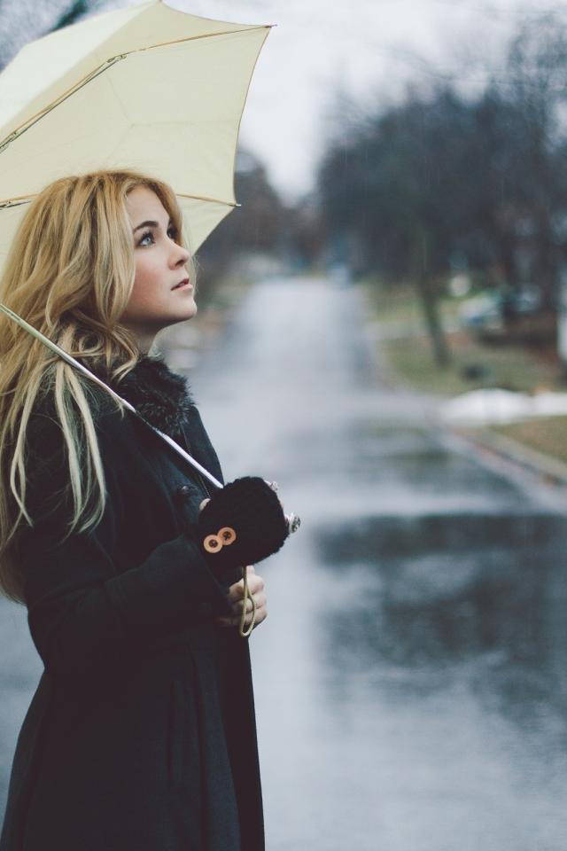Wallpaper Blonde under white umbrella in the rain