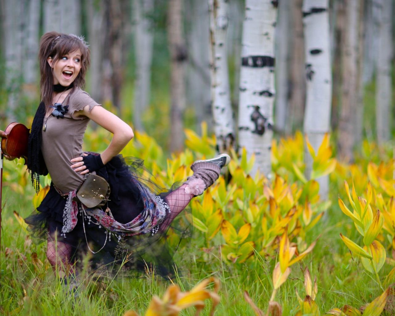 Wallpaper Violinist in the birch grove
