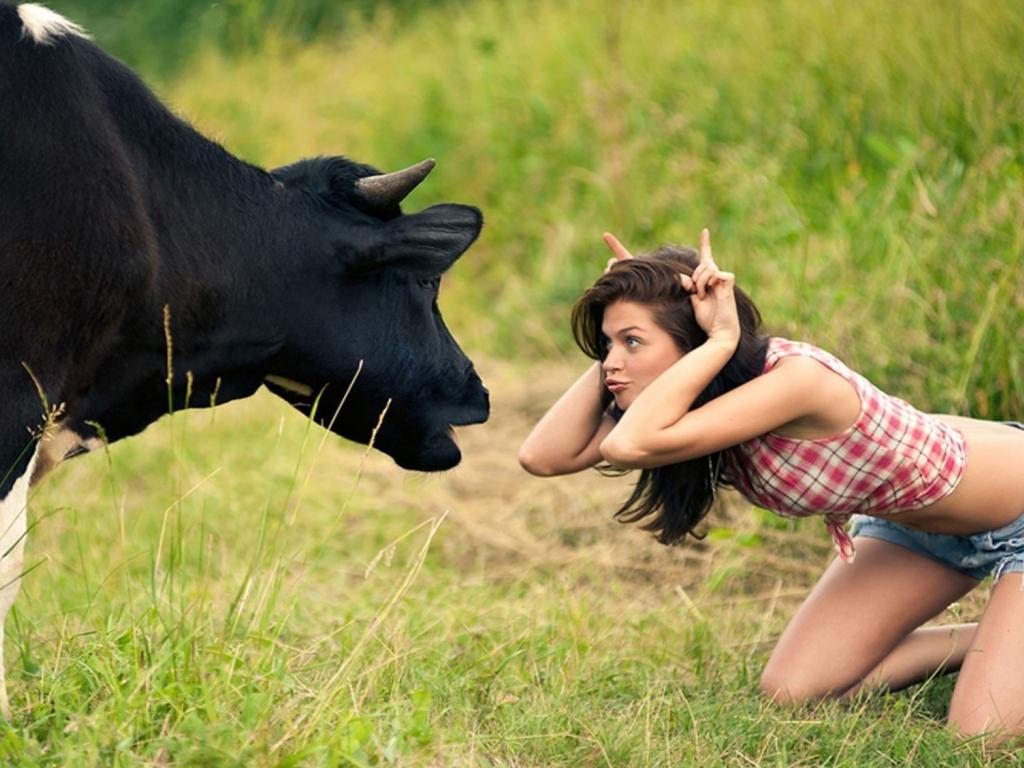 Wallpaper She teases cow