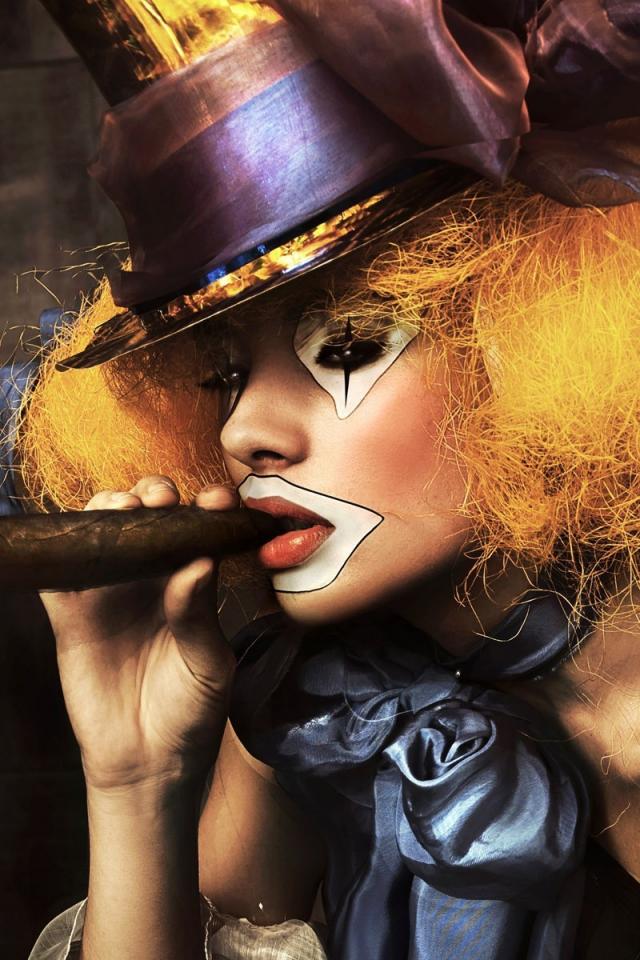 Wallpaper Girl clown with a cigar