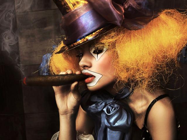 Wallpaper Girl clown with a cigar
