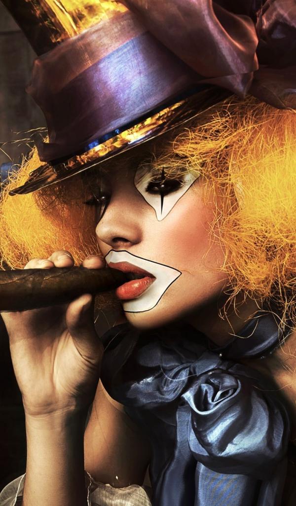 Wallpaper Girl clown with a cigar