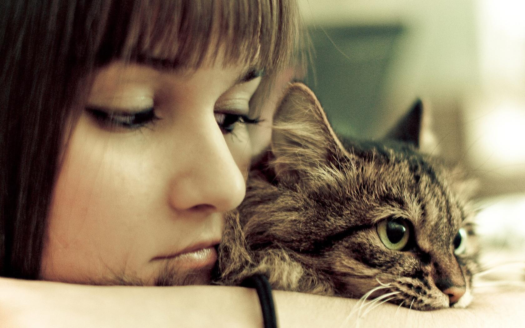 Wallpaper The girl is sad with his cat