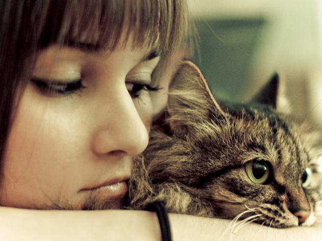 Wallpaper The girl is sad with his cat