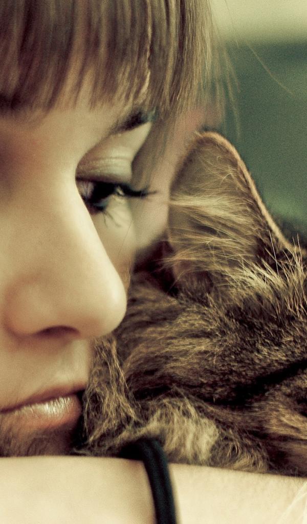 Wallpaper The girl is sad with his cat