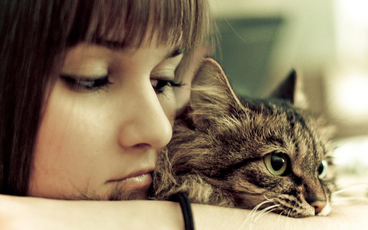 Wallpaper The girl is sad with his cat