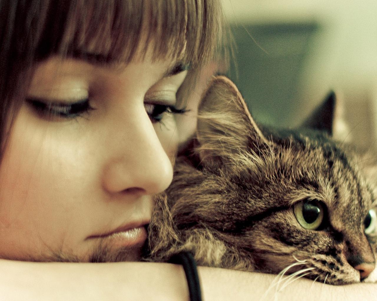 Wallpaper The girl is sad with his cat