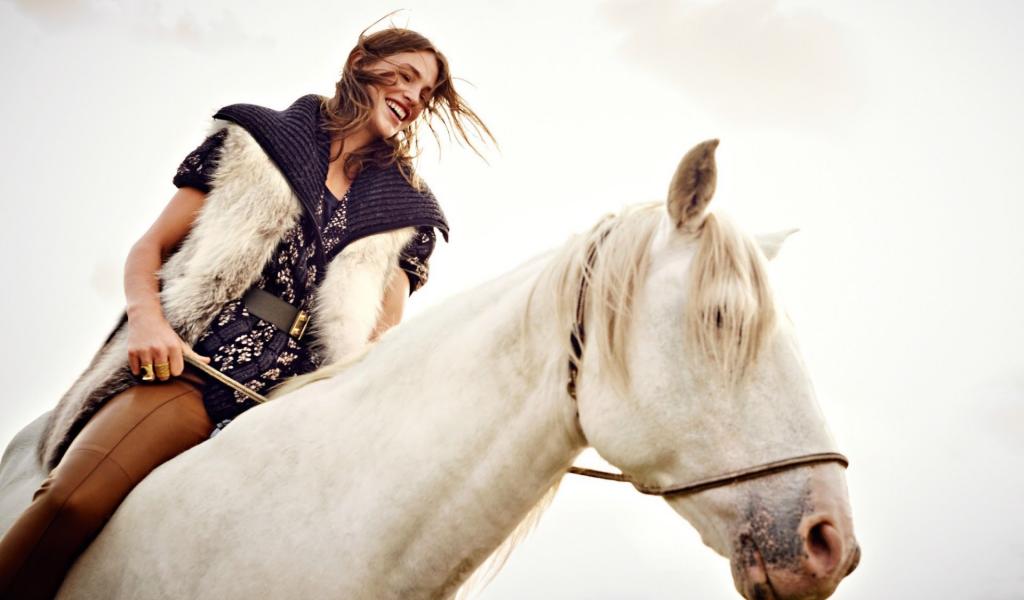 Wallpaper Girl riding on a white horse