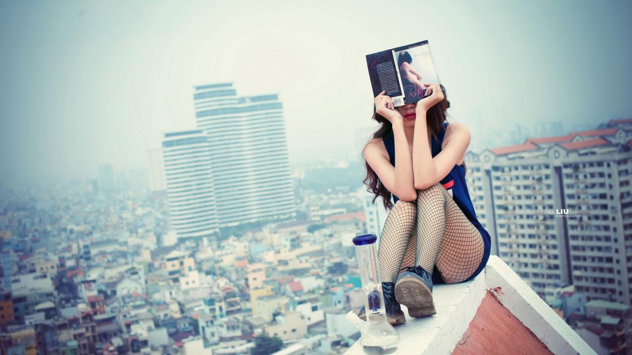 Wallpaper Woman with a book on the roof