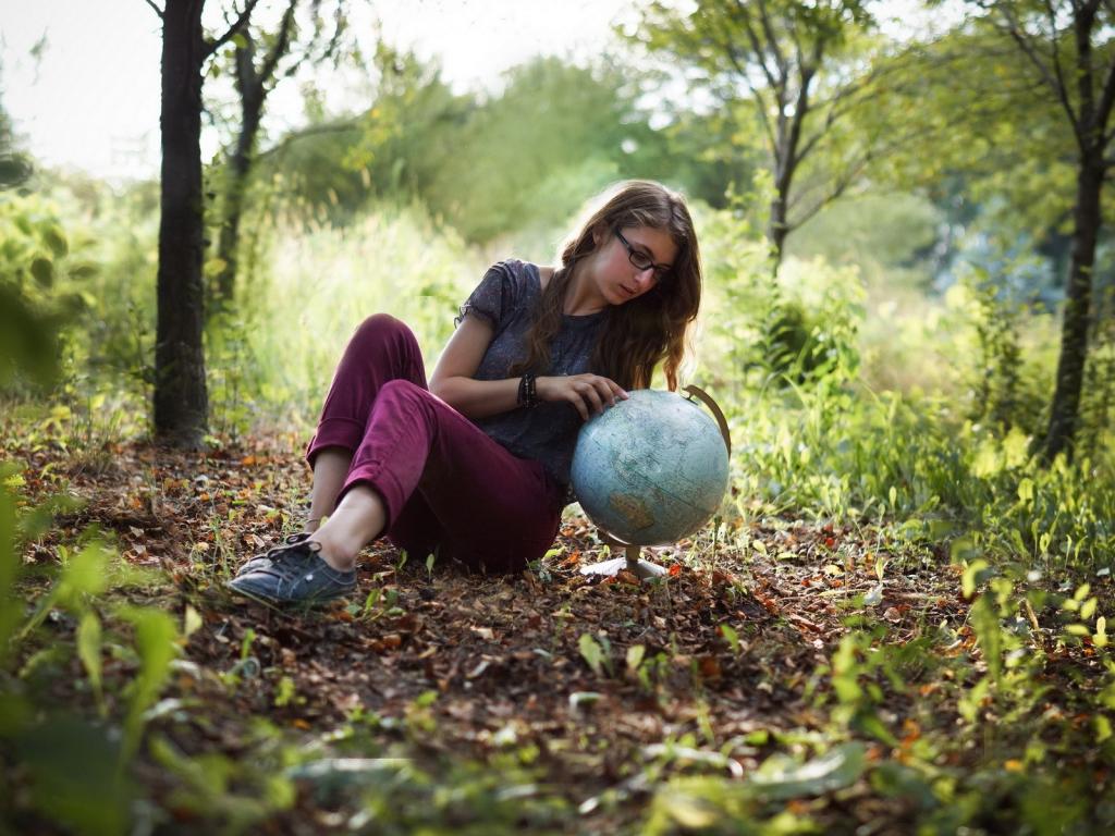 Wallpaper The girl with the globe in a meadow