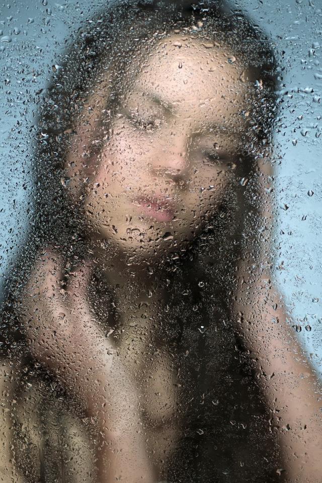 Wallpaper The girl behind wet glass
